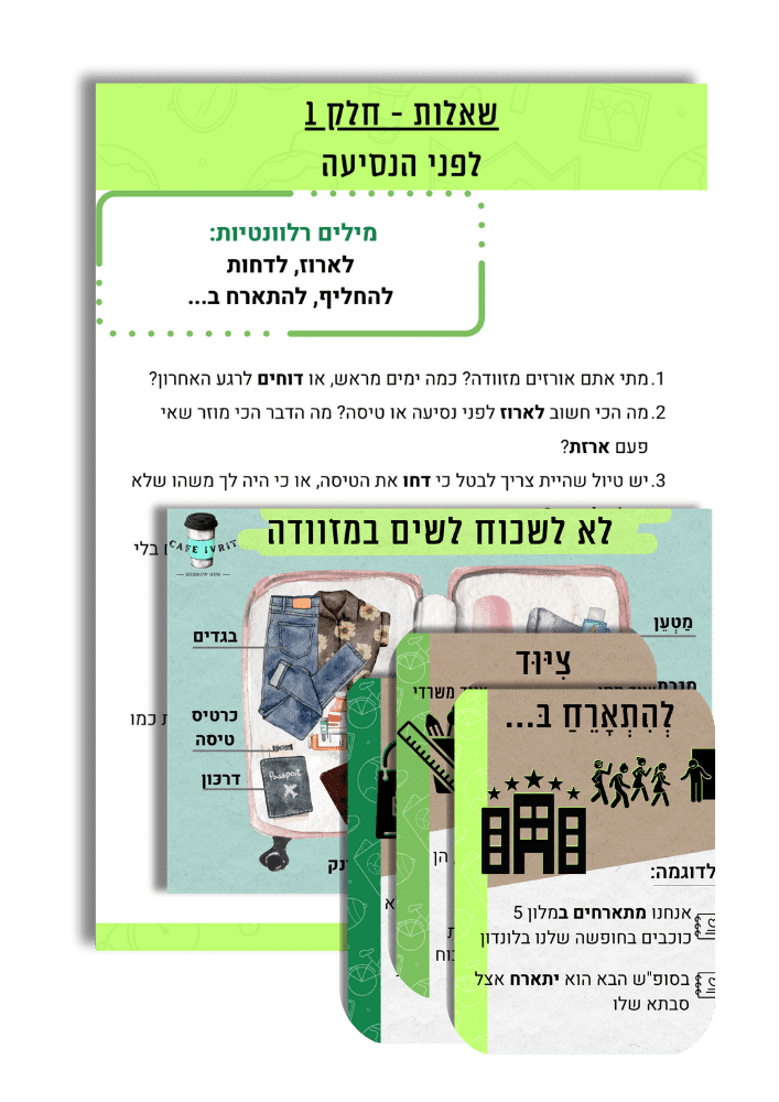 Cafe Ivrit kits are here to help. Each one focuses on a specific theme and includes practical, modern vocabulary you can actually use in conversation.